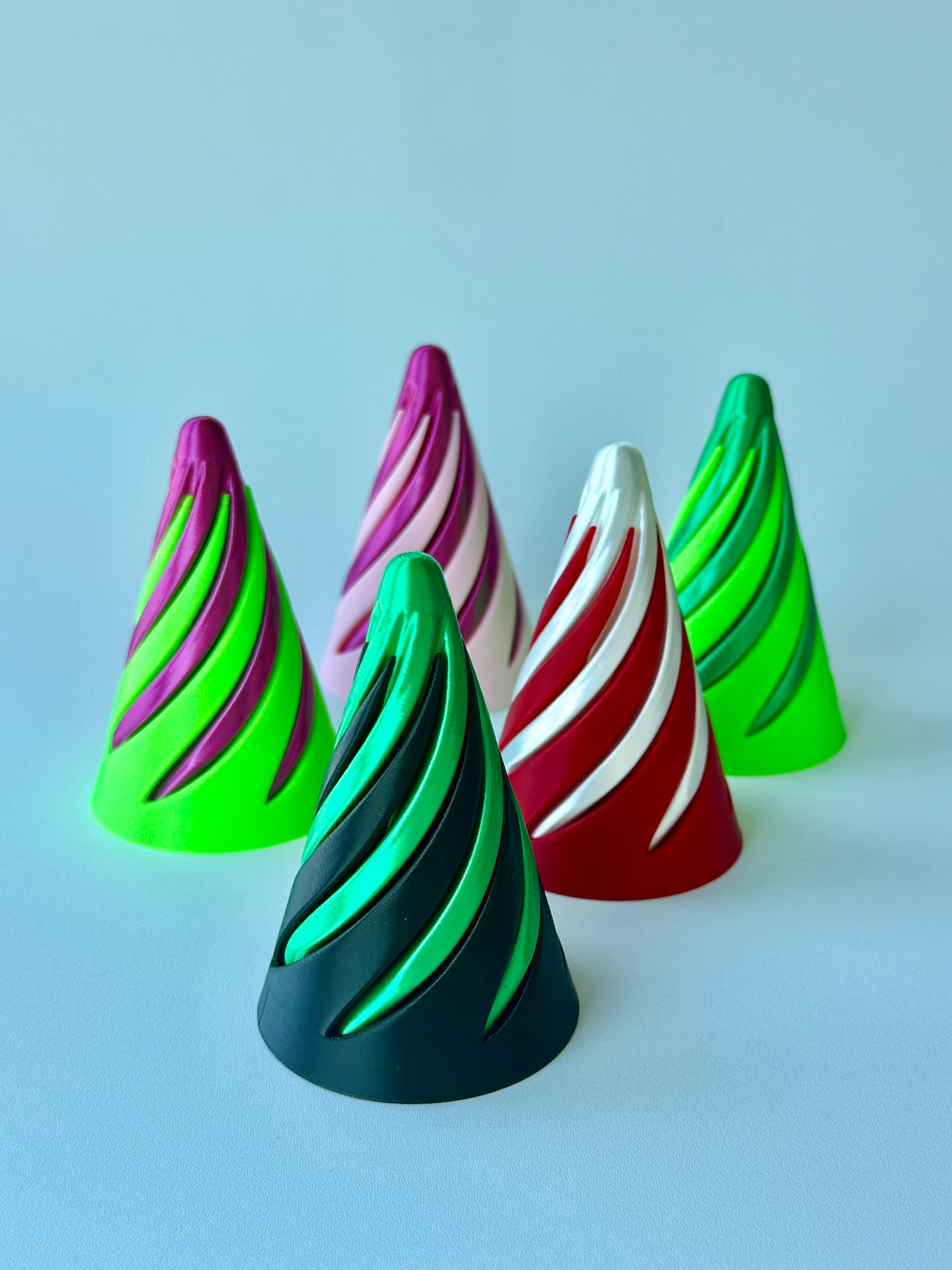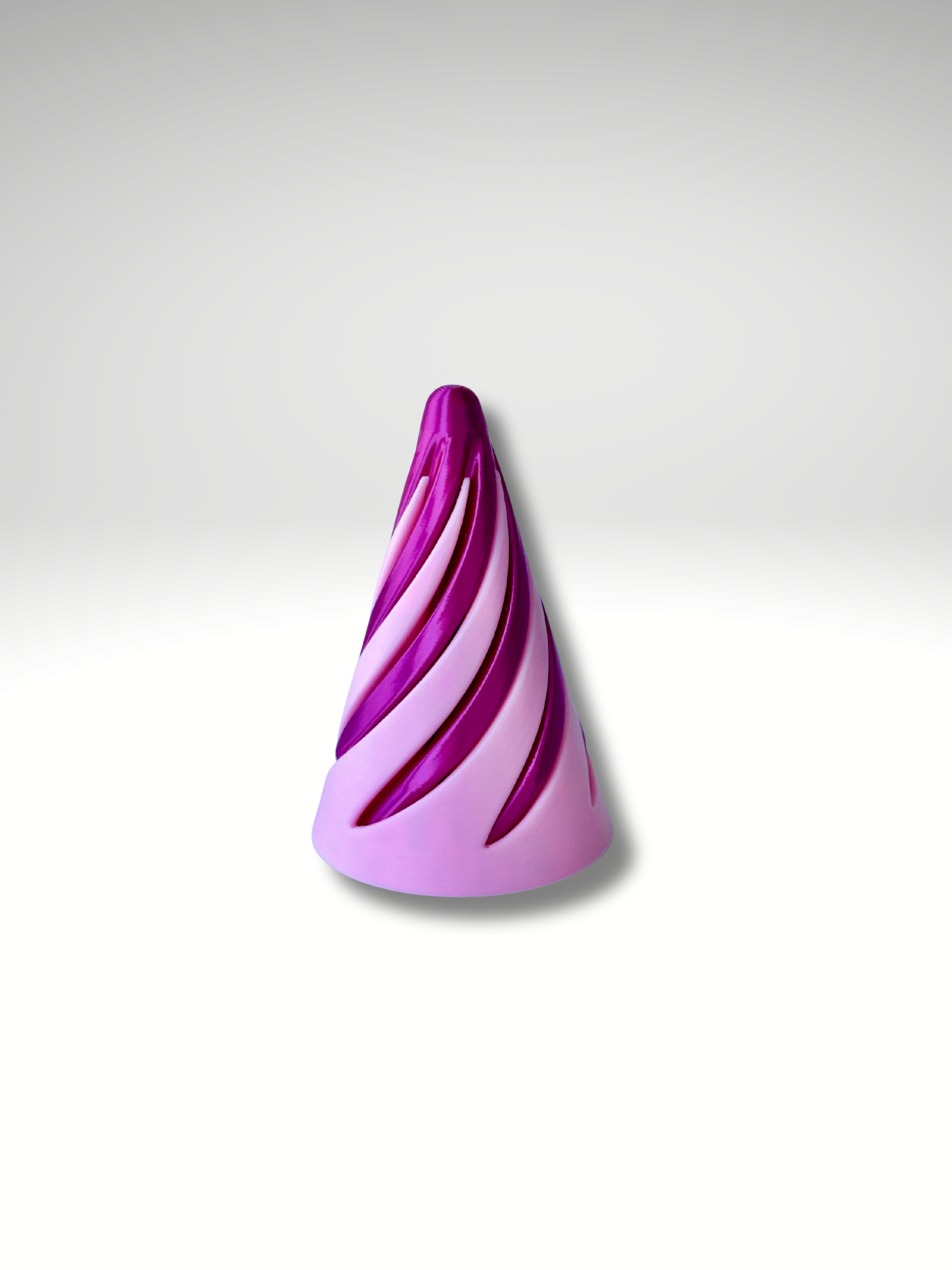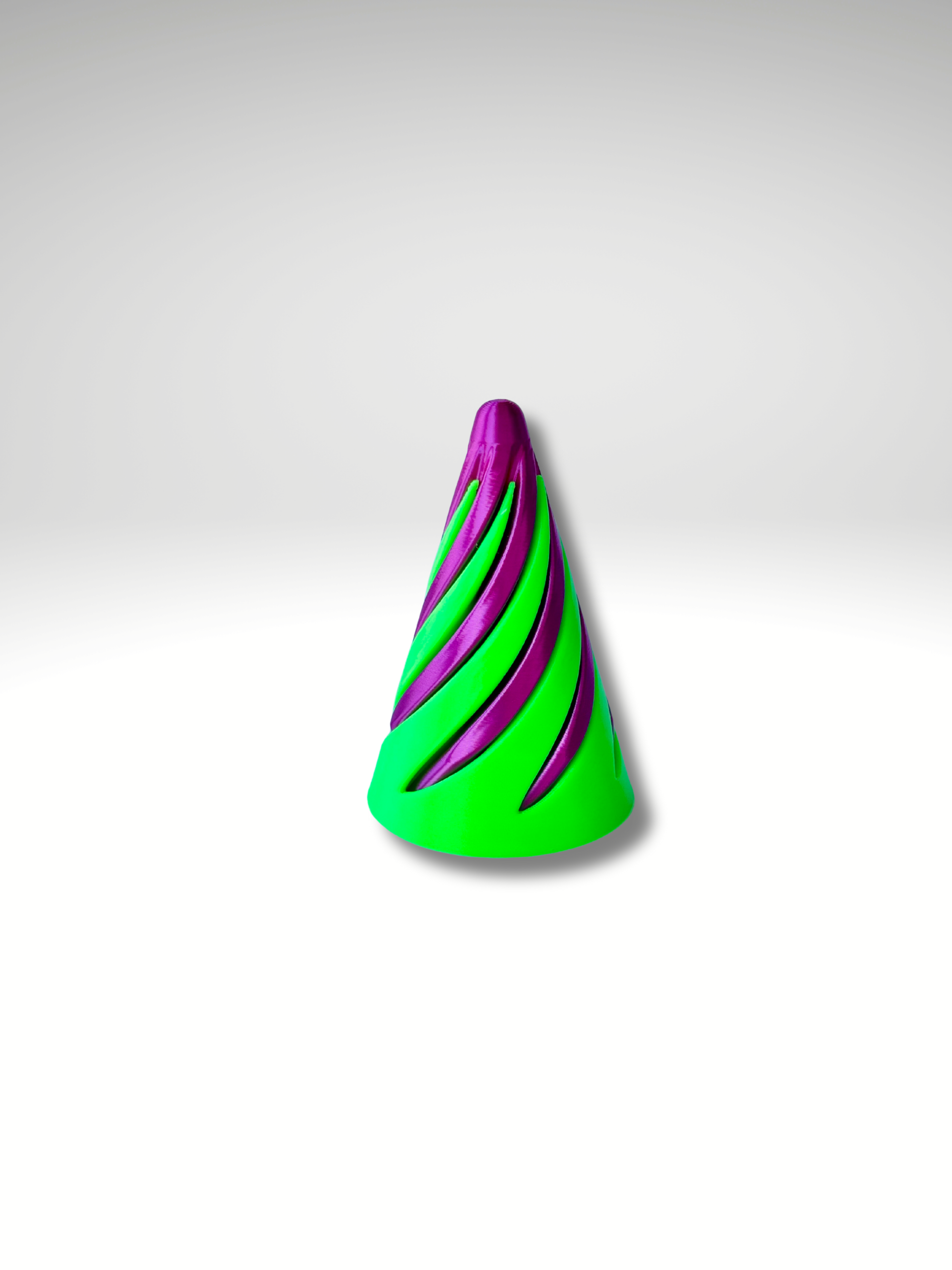 Satisfy your fidget cravings with our two-piece 3D printed Fidget Cone – a stress-relieving twist toy designed to passt through, rotate, fit into place from either side. Its bolt-like design fits perfectly in your hand and features reversible ends that add a satisfying tactile experience whether you're twisting in or out. Whether on your desk or in your pocket, this fidget cone is the perfect dopamine booster for everyday focus or fun.