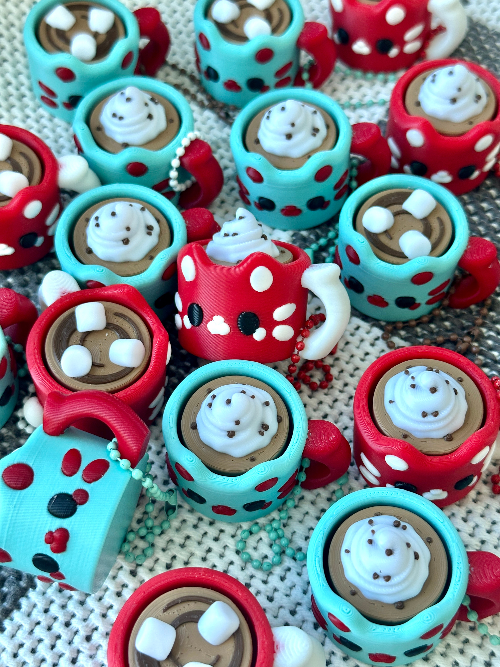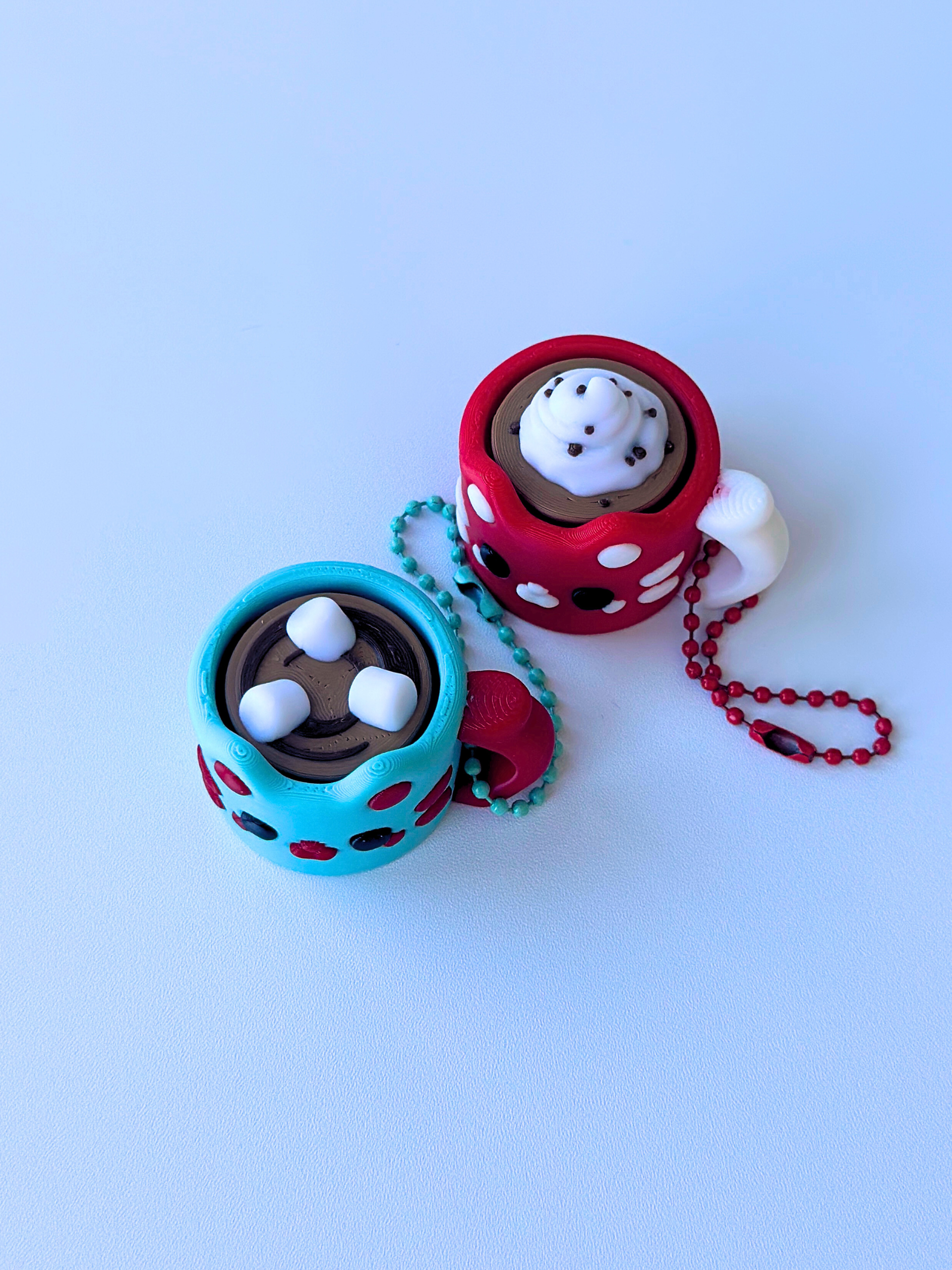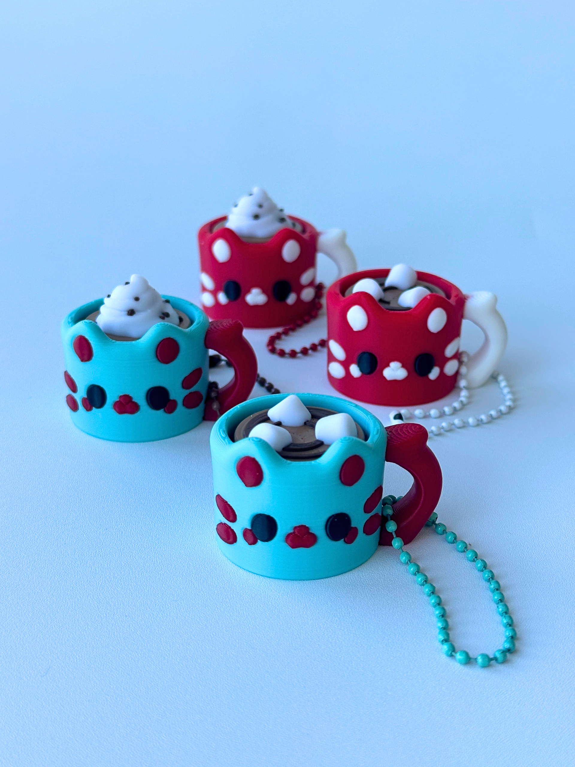 Cozy vibes in your pocket! These adorable 3D printed Cat Mug Clickers bring the magic of hot chocolate season into the palm of your hand. Each mug features a cute cat face with a warm drink topping: either gooey marshmallows or fluffy whipped cream. Designed for maximum fidget satisfaction, the clicker is subtly hidden in the top, making it both a comforting desk toy and a satisfying stress reliever.